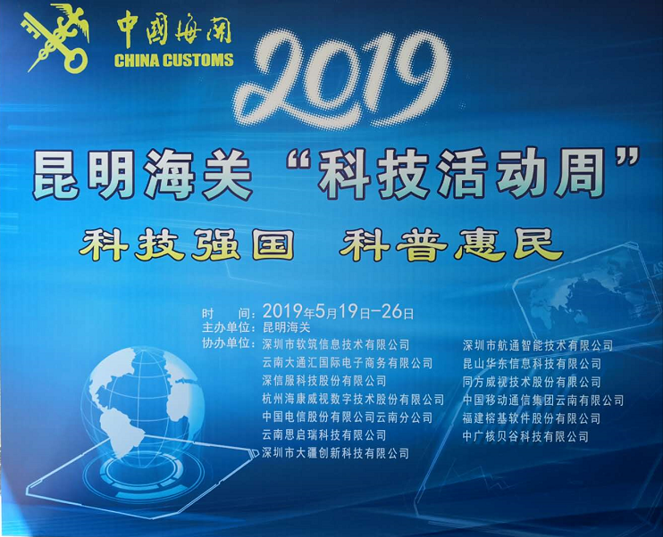 2019昆明海關“科技活動周”科技展于5月20日至5月26日在昆明海關一樓大廳正式開啟。本次活動周圍繞“科技強國、科普惠民”的主題,通過展板、展臺、體驗式交互等方式,對科技創(chuàng)新助力云南口岸通關便利化的發(fā)展歷程、重大成果以及未來規(guī)劃進行了展示?;顒蝇F(xiàn)場航通展出了所開發(fā)的云卡口系統(tǒng)等智能化軟硬件設備、全景業(yè)務監(jiān)測平臺、跨境電商解決方案以及邊民互市貿(mào)易申報系統(tǒng)等全套解決方案。