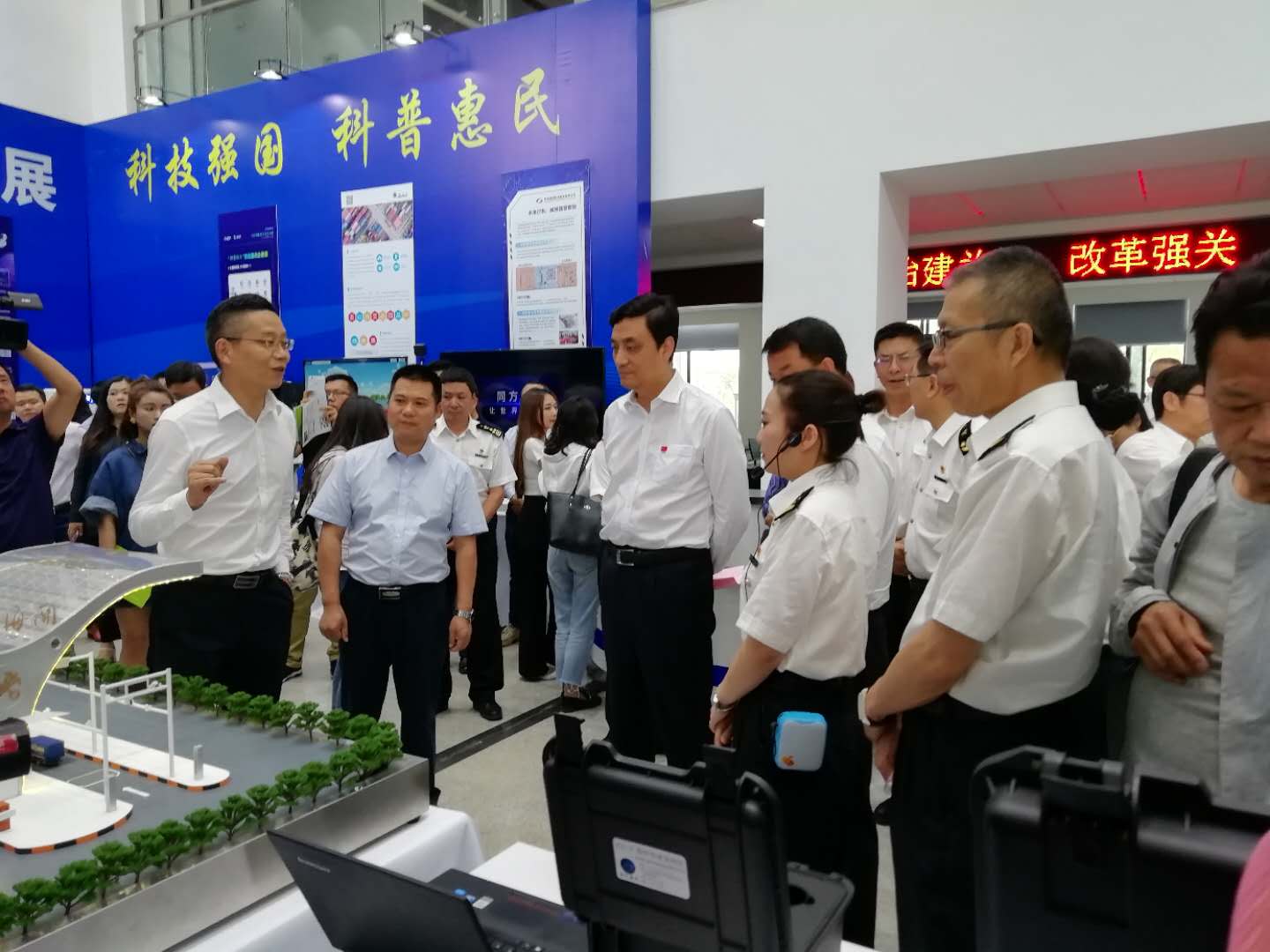 本次科技周活動受到媒體廣泛關注,云橋網(wǎng)、中國日報、云南日報、昆明日報等多家媒體對昆明海關科技周活動進行報道。此次科技展參觀人數(shù)達1500余人次,昆明海關和云南省科技廳、廣大關警局員,云南省科學技術廳和商務廳的領導,企業(yè)人員等參觀了展覽。本次科技周航通的展位吸引了眾多媒體,現(xiàn)場的工作人員向媒體與來訪關員們宣傳了對近年航通的新技術以及對海關科技創(chuàng)新的新方案,受到了關警局員及相關企業(yè)的普遍好評。